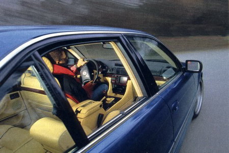 Список серийного оснащения был огромный: Airbag для водителя и пассажира, ABS, бортовой компьютер, электропакет, кассетная или CD Hi-Fi магнитола BMW (для CD- магнитолы предлагался чейнджер на 6 дисков), сотовый телефон, цветной ж-к монитор, навигация, электрический люк в крыше, сиденья с памятью на 3 положения, климат-контроль, автоматически включающийся ближний свет, ксеноновые фары и т.д.