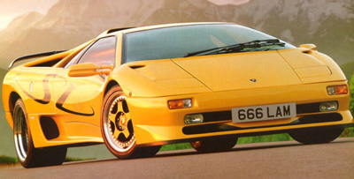 А в январе 1990 года в Монте-Карло публике был представлен прямой наследник грозного Countach – Lamborghini Diablo. Внешне Diablo не был похож ни на одну модель компании, это был новый виток в дизайне этой марки. Он был одновременно элегантным и агрессивным. Точные, ярко выраженные острые грани и линии придавали автомобилю агрессию. Автомобиль был оборудован очень модными на то время убирающимися передними фарами и открывающимися вверх дверями. В конце 80-х годов Lamborghini перешла под контроль Chrysler, и дизайн получился совместным, итало-американским, что можно заметить в первую очередь по смещённому вперёд салону.